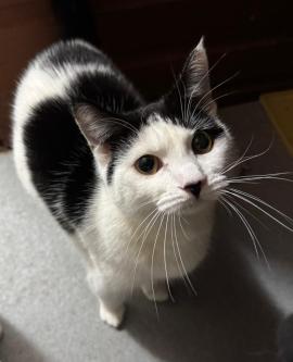 Meadow is a very reserved cat but has a really sweet, gentle nature. She likes face rubs. She has lived with other cats in her previous home. She would do best is a quiet home without children.