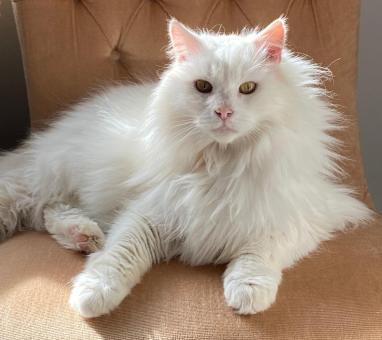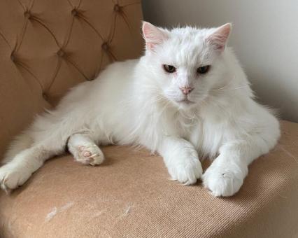 Ozzie and Mo are a delightful, brother and sister pair of long-haired white cats, looking for a home together. Both cats will need regular grooming, which they enjoy but will let you know when they have had enough!