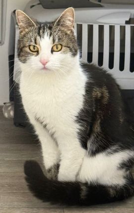 Pepper is a pretty tabby & white female and is in good health. She has been loved and well cared for by her previous owners but is looking for a new home because they have relocated overseas. She likes to be stroked and appreciates affection on her terms. It is unlikely she will become a lap cat.