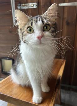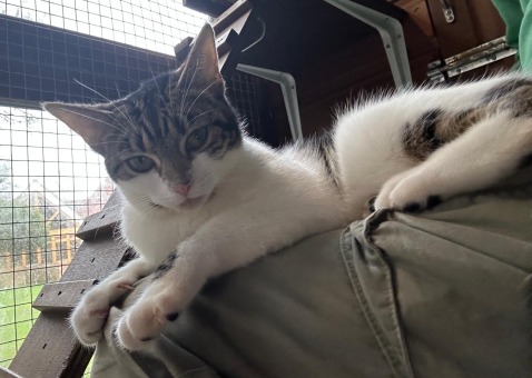 Willow is a short-haired lovely looking tabby, who is inquisitive. She loves attention but on her terms. She has ventured onto our laps!