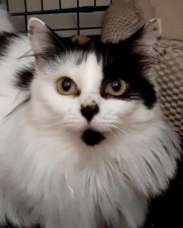 Dolly is a fluffy black and white female. She is very sweet and gentle and gets on with all the cats she meets. She is happy to be stroked and picked up but wary of new people.