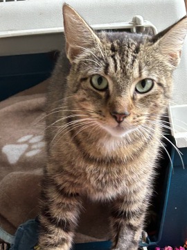 Ivy is a beautiful cat with two-tone whiskers and gorgeous markings which remind us of a Scottish Bobcat!