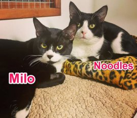 Noodles and Milo came to us as really rather frightened indoor cats, so it has been wonderful to watch their progress and see them loosen up and show their true personalities in their brief time in foster care. This bonded duo are newly neutered and super fit and healthy. They are now ready for their forever home and will make an ideal pair of pets.