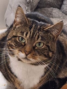 Princess is a beautiful tabby girl, who came into foster care with a litter of kittens several months ago. She is a sweet natured cat, who loves her food. She is wary of strangers and will be shy at first in her new home. She has the softest coat and enjoys a stroke but is not keen on being picked up, however, she readily jumps into her carry box to see where her next adventure will take her. Princess would be comfortable living with another cat.