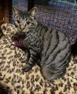 Sabrina will make a wonderful family cat as she's so friendly, playful and full of mischief. She purrs at the slightest thing and is always coming to 'help' her carer with chores. A delightful young lady.
